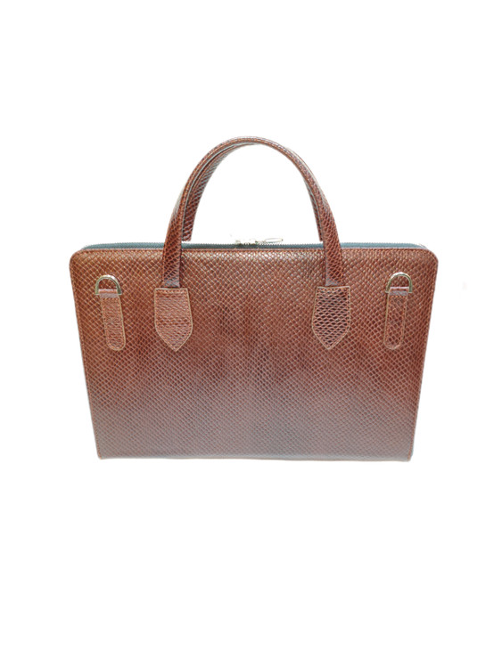 کیف کلاسور دسته دار ساخته شده از چرم گاوی درجه یک چاپ پوست ماری قهوهای کار بسیار باریک در عین حال بسیار جادار دارای محفظه لب تاب ،جای کارت و جا خودکار داخل کار هم یک زیپ کار شده بسیار سبک برای استفاده روزمره یک انتخاب ایده آل برای شما.